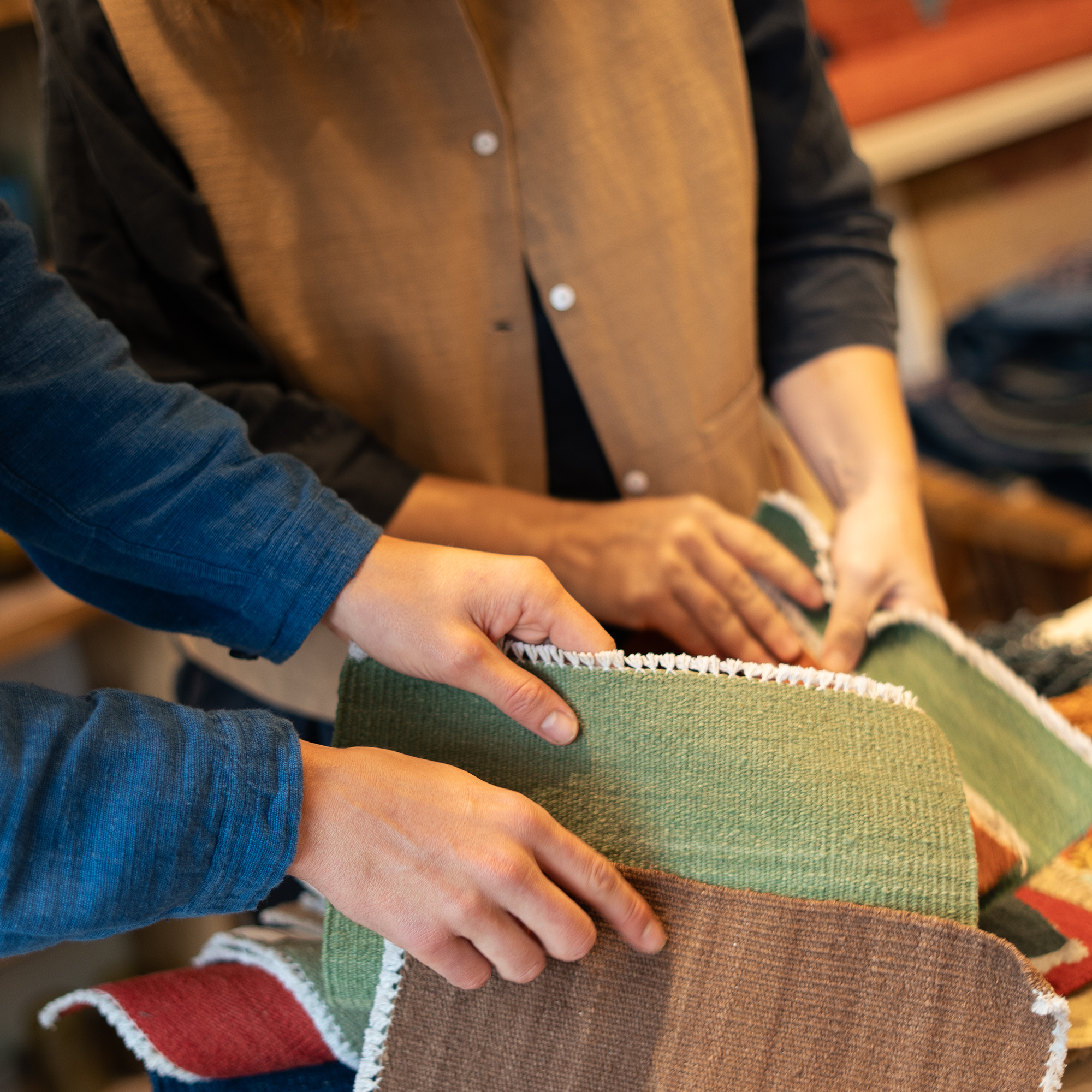 We use high-quality natural materials — wool and sometimes silk — chosen for their beauty, durability, and timeless appeal.