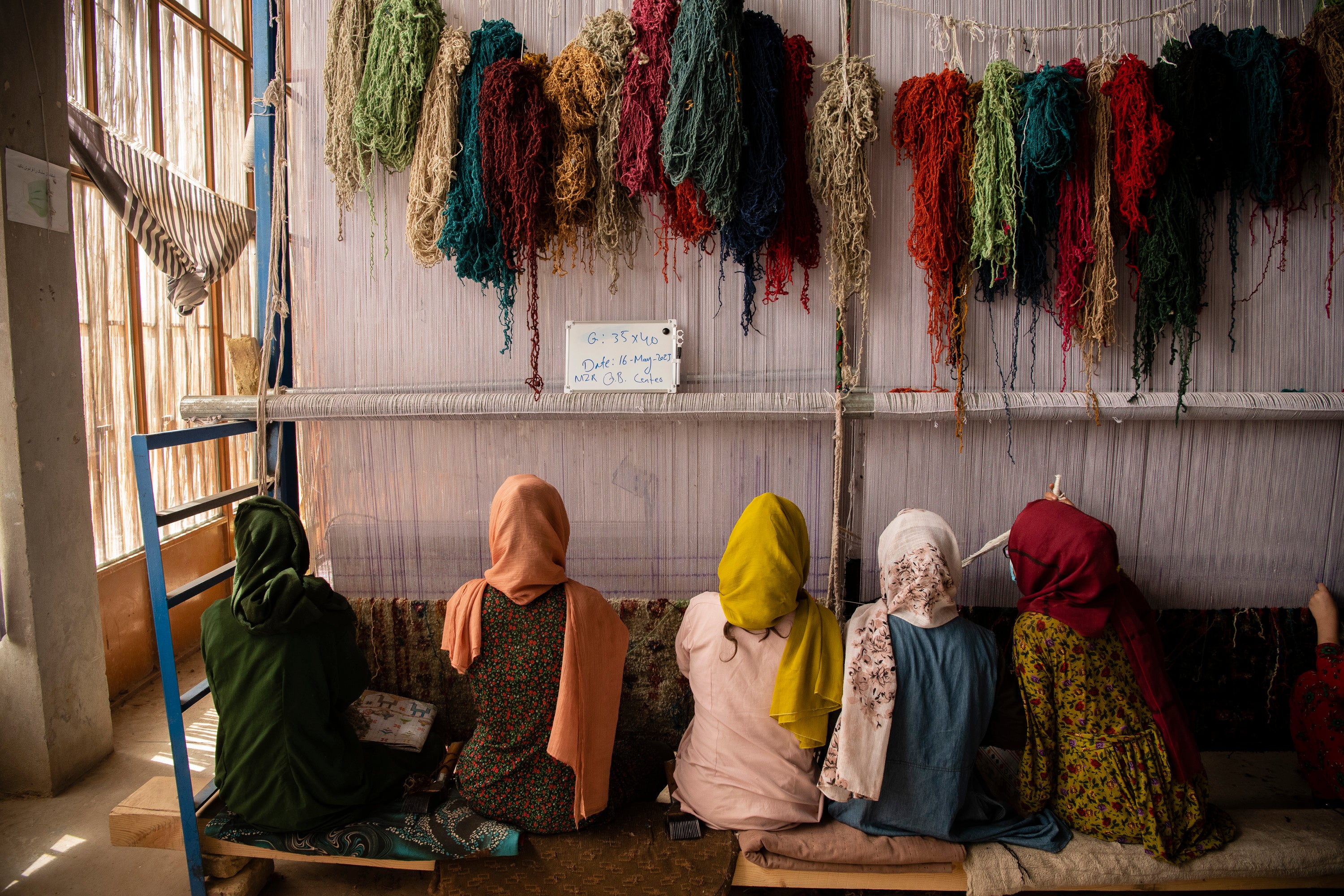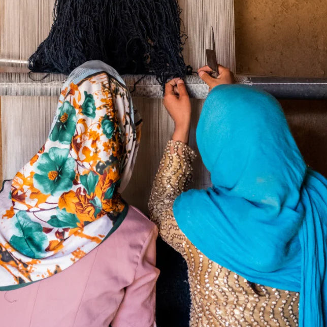 Your rug is made-to-order by women weavers in northern Afghanistan. Each flatweave or hand-knotted rug takes a team of two or more weavers between 3-6 months to make, depending on the size. We will update you along the way to ensure your design has been translated perfectly to your specification.