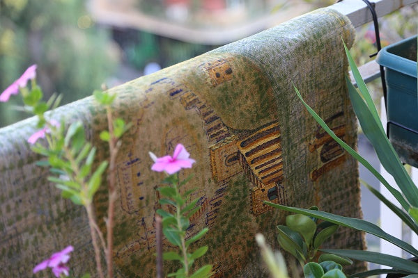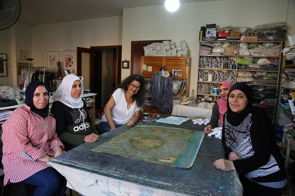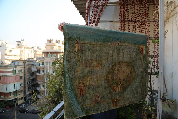 Climate change produced a drought that contributed, or at least aggravated, Syria’s civil war that forced Zena Sabbagh to flee in 2012. Originally from Aleppo, Zena is now based in Beirut, Lebanon, where she has established her own textile atelier. Although her home city has been torn apart, Zena used Aleppo as her subject for the UN Live exhibition. Zena patched together the city of her dreams: decorating the ancient citadel with trees and birds with intricate embroidery. The making process was very therapeutic.