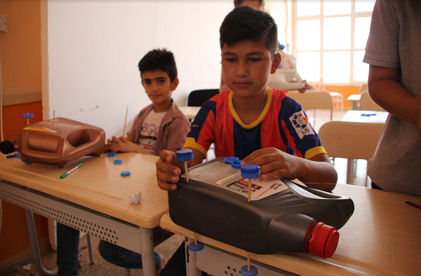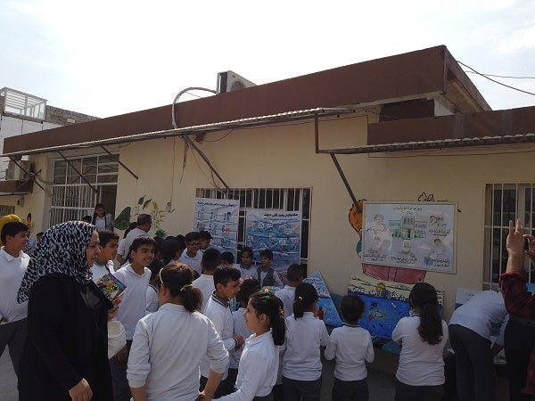 Nabil Musa, Iraq’s first “water keeper”, Kurdish environmentalist and freelance artist based in Sulaymaniyah. Safen Muhammad is the director of ART +, a cultural organisation training children across the region in art and environmental issues, based in Sulaymaniyah. War can incinerate natural resources. In the case of Iraqi Kurdistan these resources have been used as leverage and as weapons against local populations. Nabil and Safen hosted an event to raise awareness on water pollution at Kakay Falah elementary school in Sulaymaniyah. The children learnt how to create art from objects and reused plastic.
