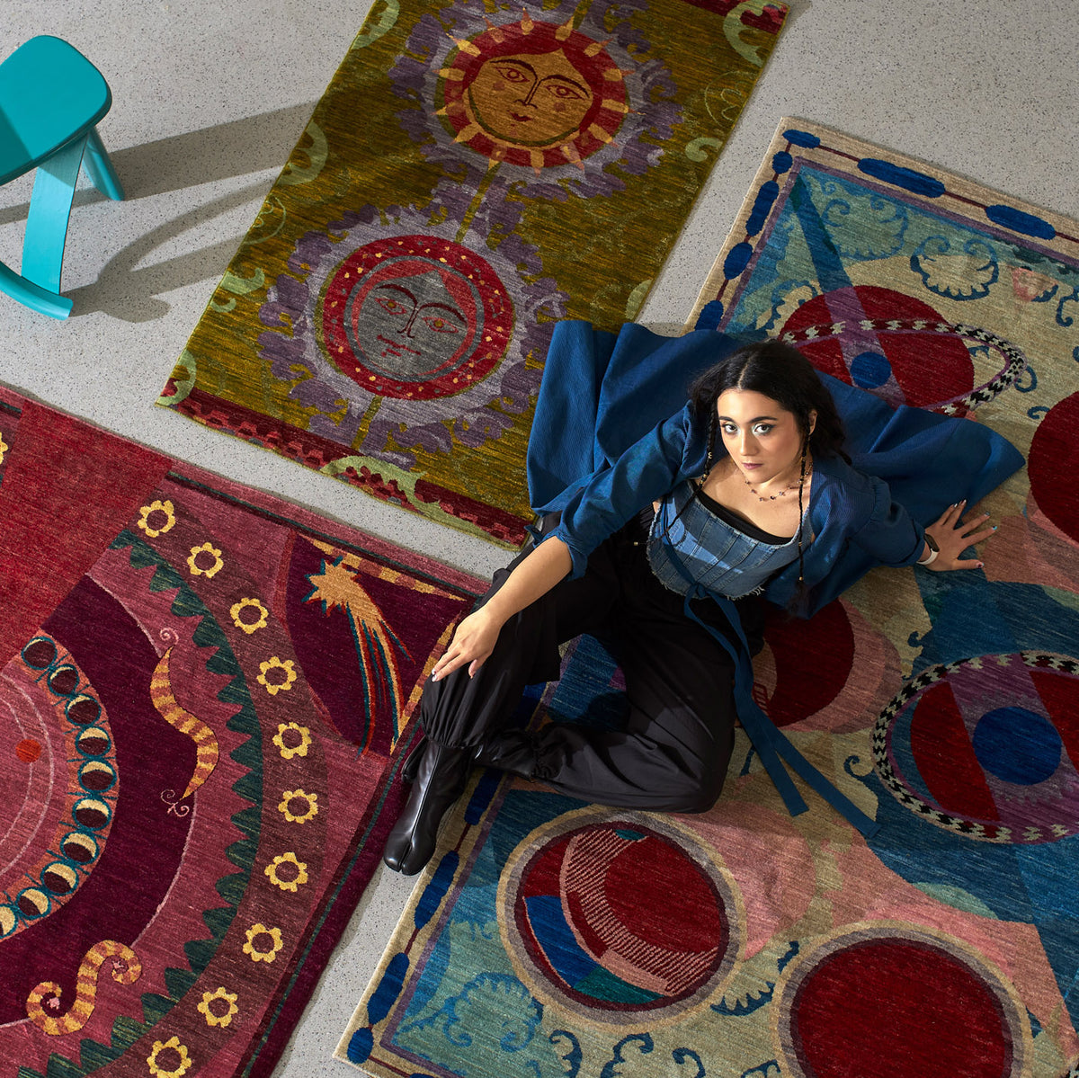 ISHKAR collaborates with London-based Uzbek artist Aziza Kadyri on a limited-edition collection of rugs inspired by cosmos-related patterns found in the palak textiles of Tashkent and Jizzakh, regions shaped by desert, steppe, and nomadic cosmologies.